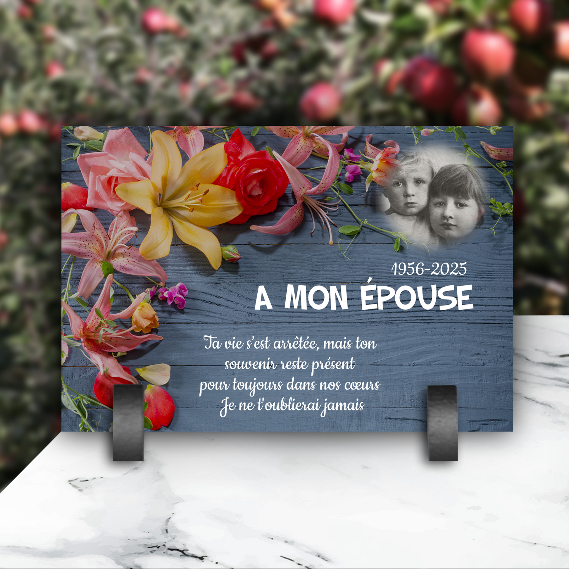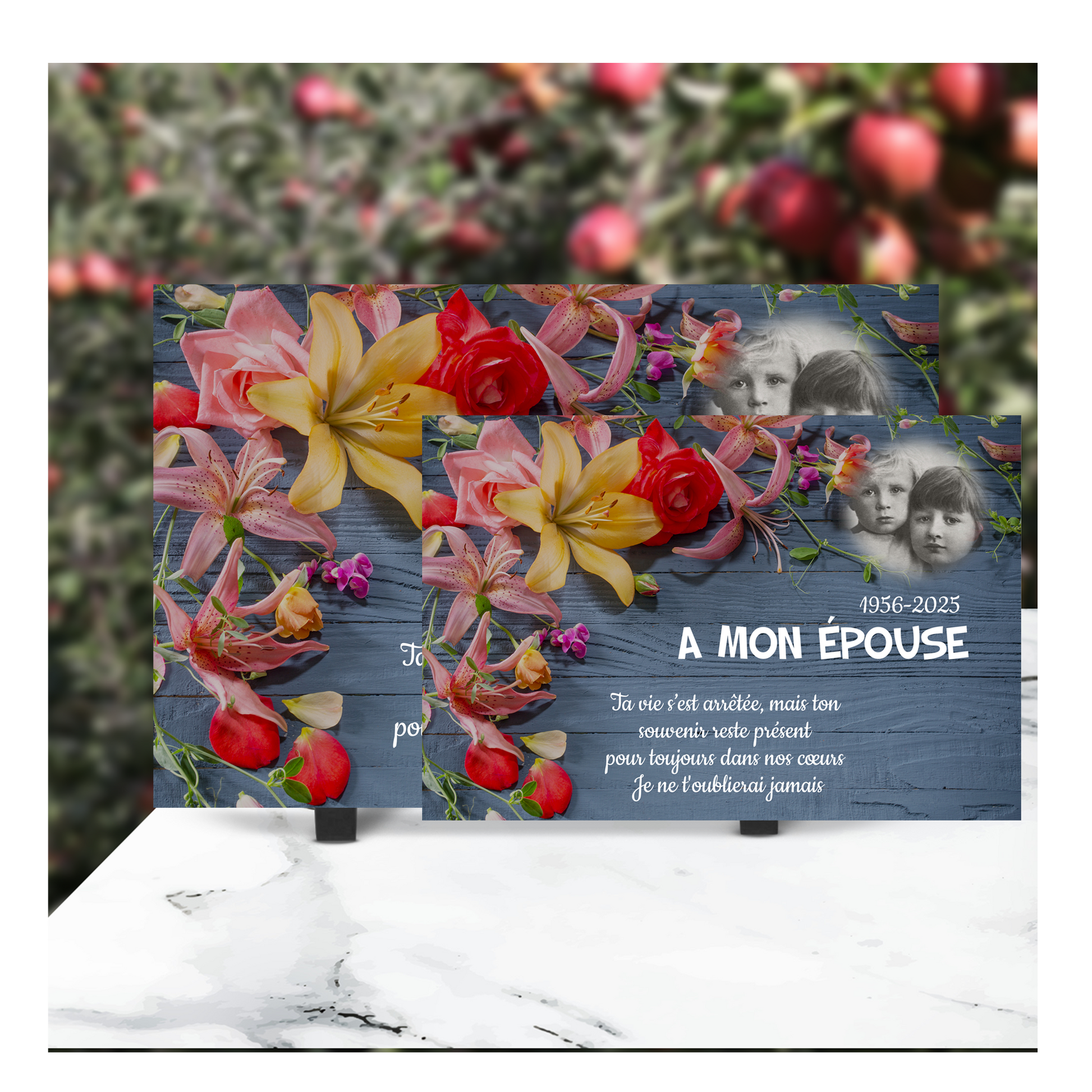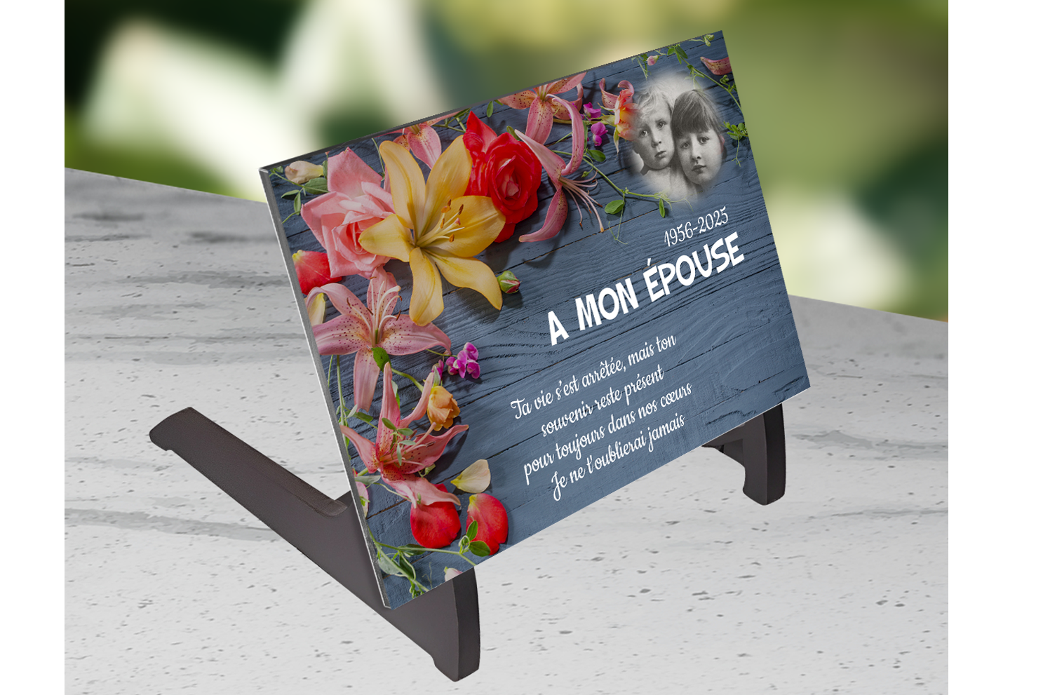 Absolument. Vous pouvez choisir la forme, ajouter un texte (nom, dates, message), intégrer une ou plusieurs photos, et même sélectionner le type de fixation.