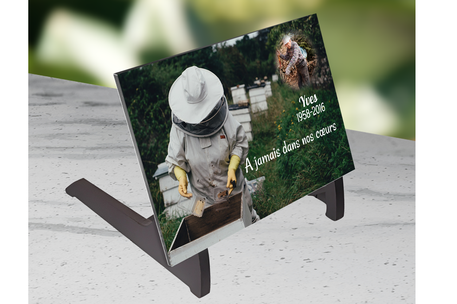 Absolument. Vous pouvez choisir la forme, ajouter un texte (nom, dates, message), intégrer une ou plusieurs photos, et même sélectionner le type de fixation.