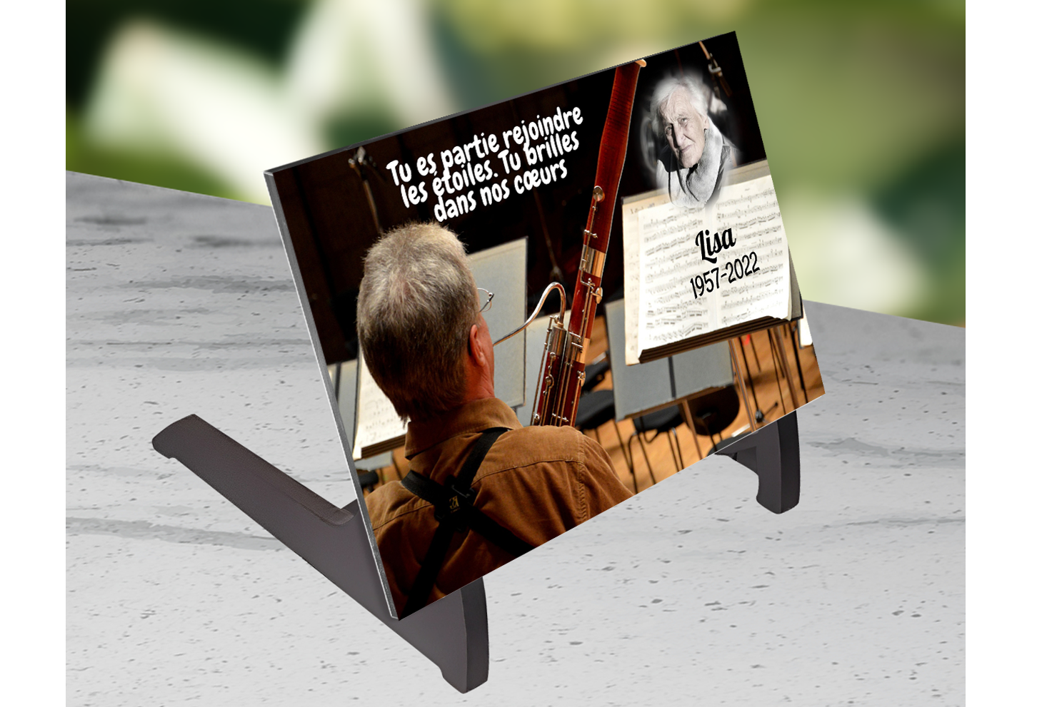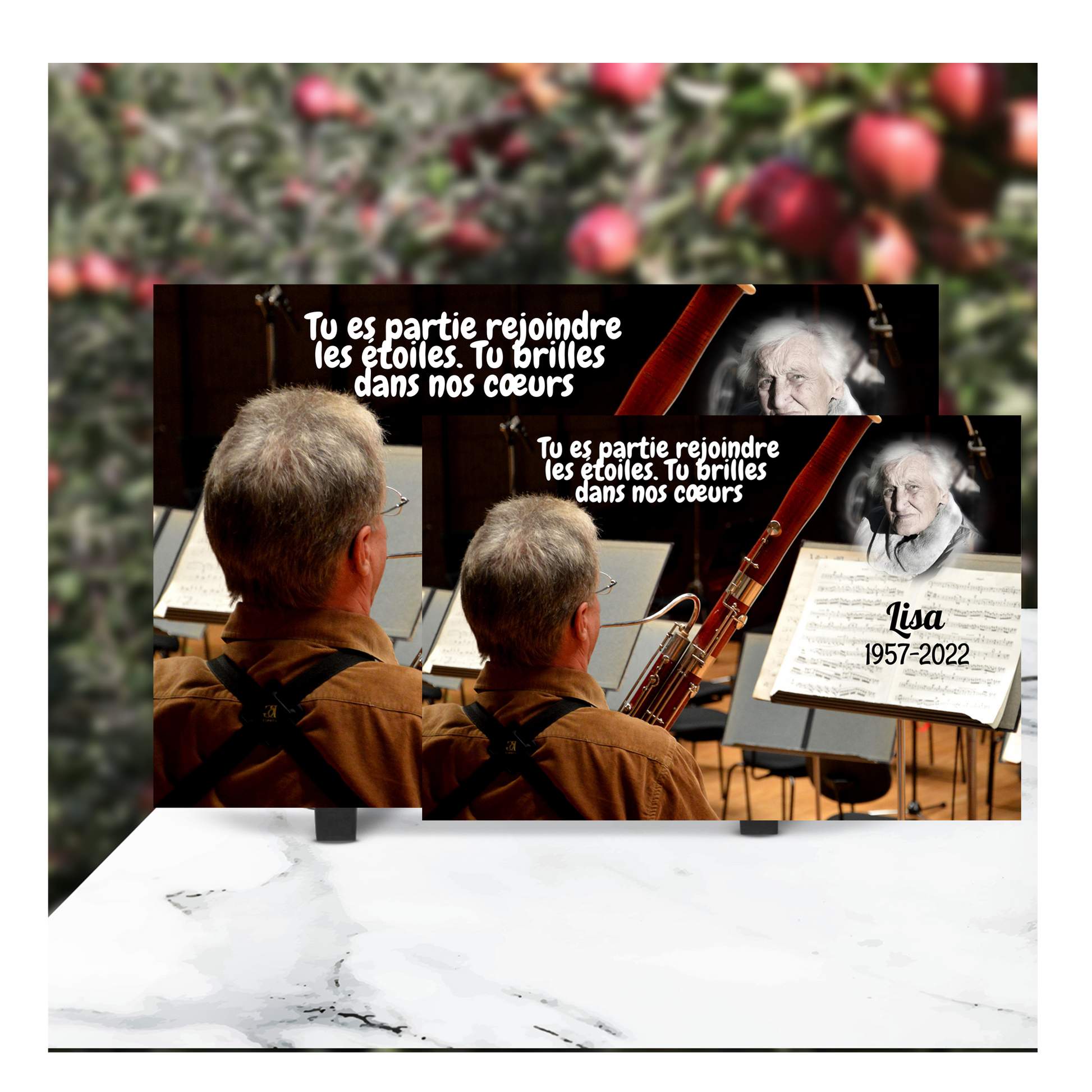 Absolument. Vous pouvez choisir la forme, ajouter un texte (nom, dates, message), intégrer une ou plusieurs photos, et même sélectionner le type de fixation.