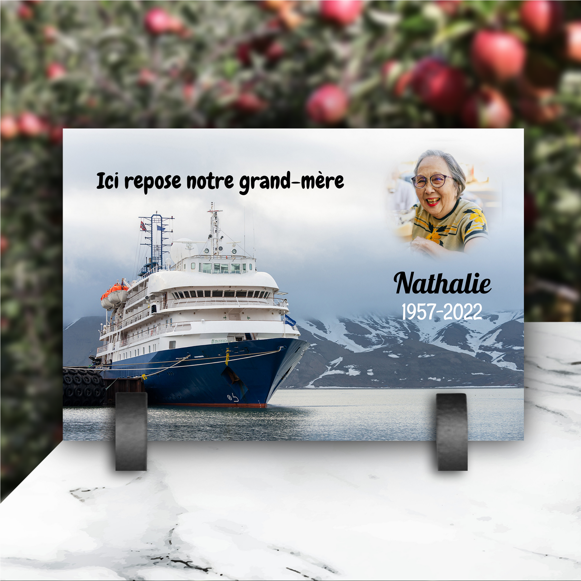 Absolument. Vous pouvez choisir la forme, ajouter un texte (nom, dates, message), intégrer une ou plusieurs photos, et même sélectionner le type de fixation.