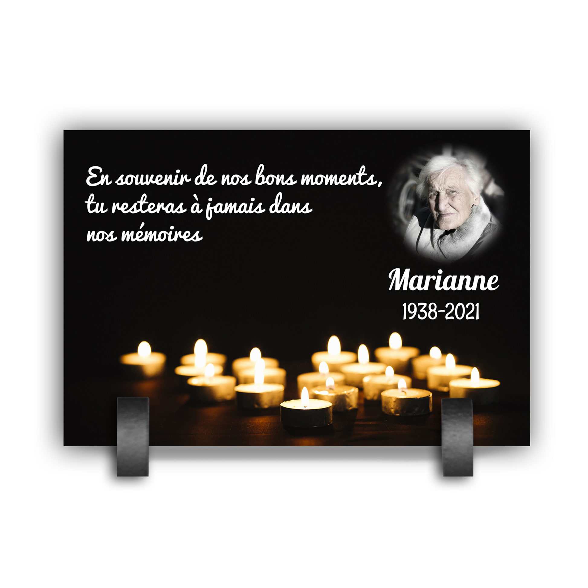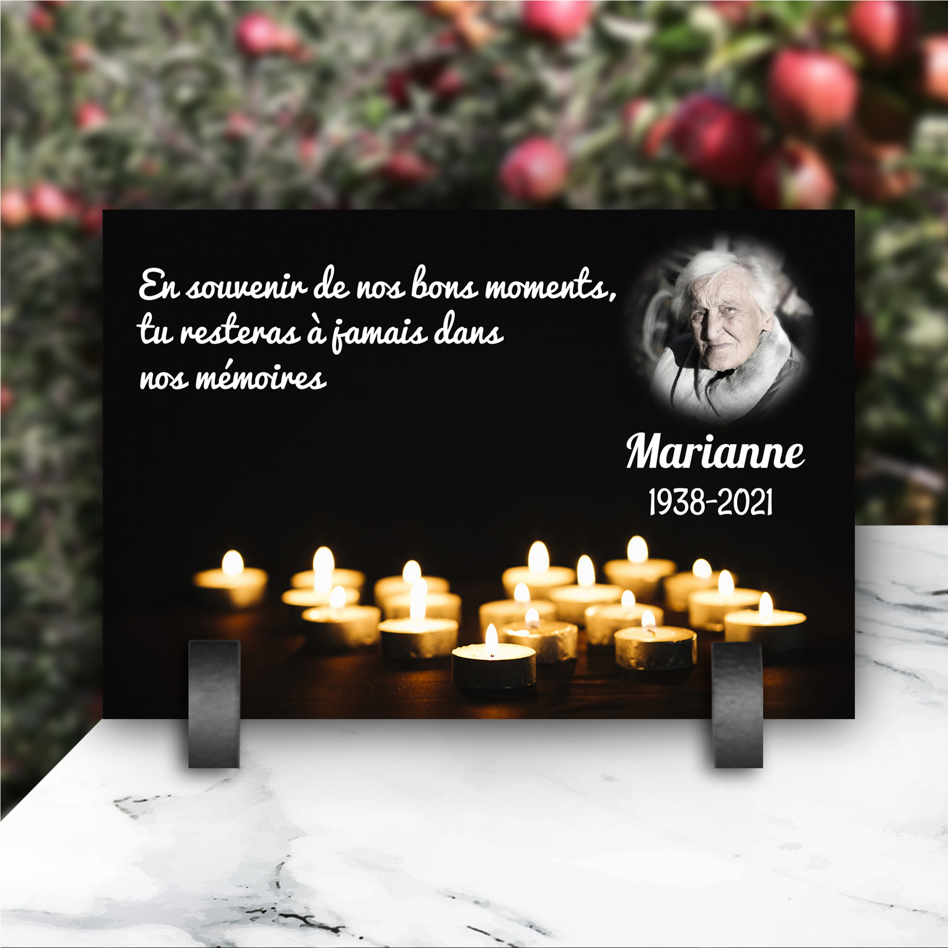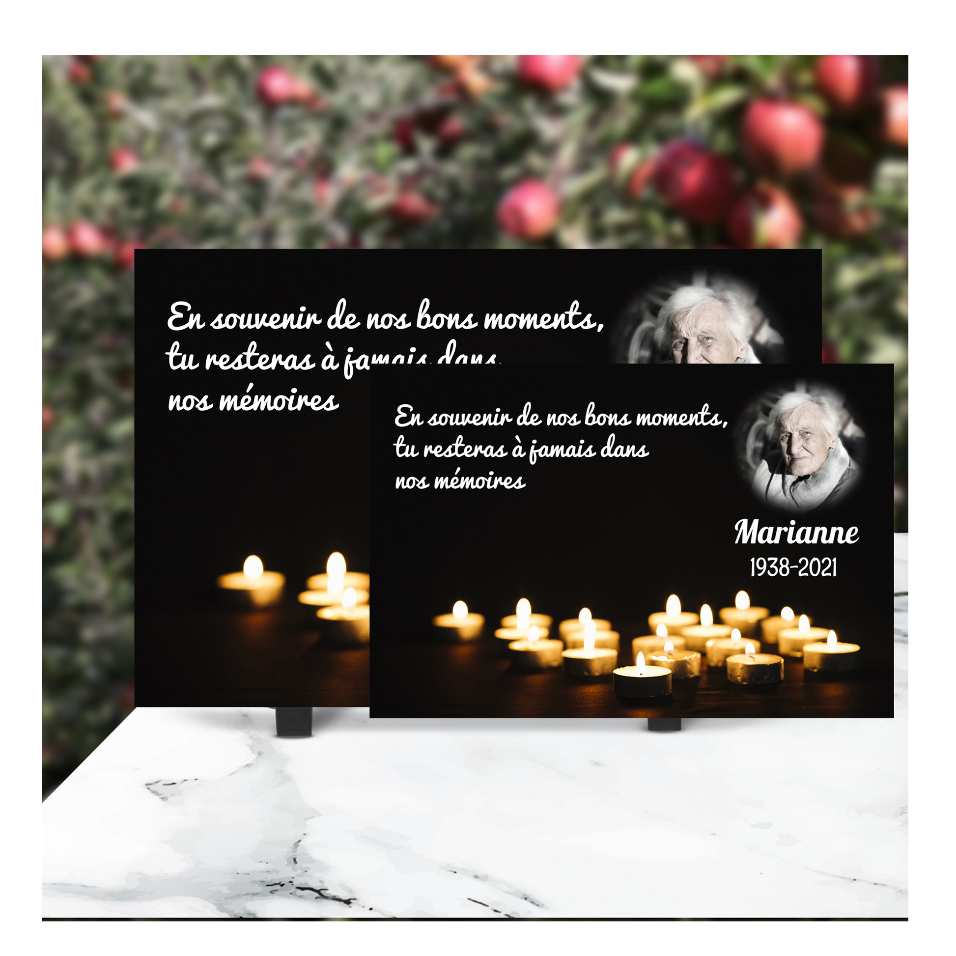 Absolument. Vous pouvez choisir la forme, ajouter un texte (nom, dates, message), intégrer une ou plusieurs photos, et même sélectionner le type de fixation.