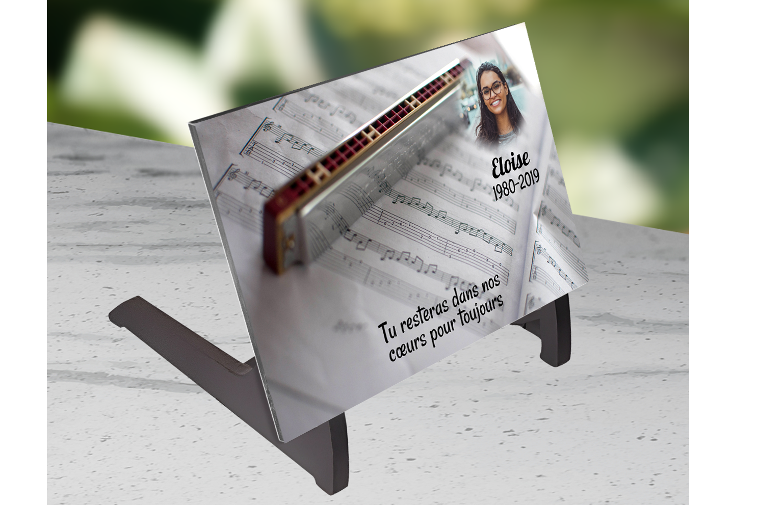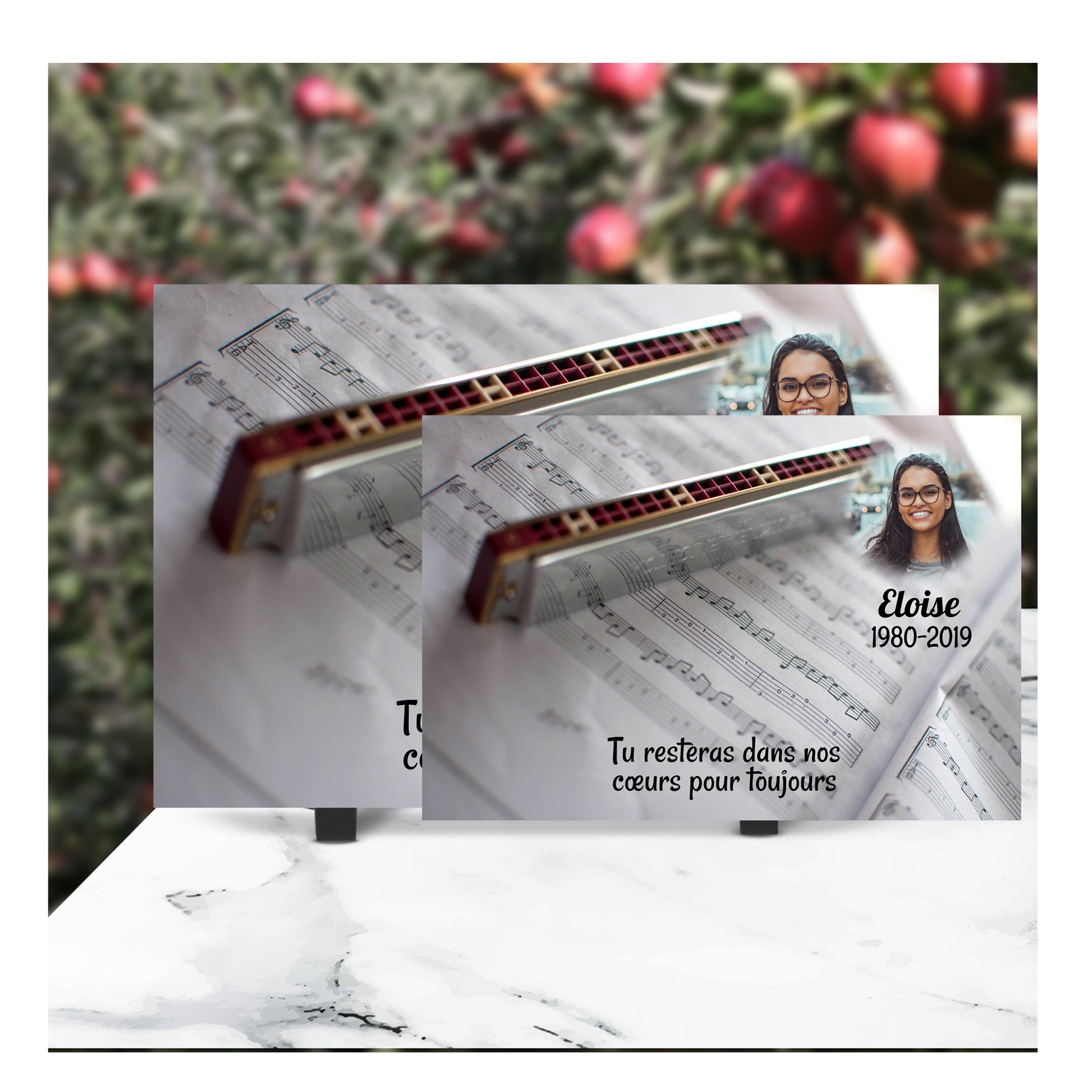 Absolument. Vous pouvez choisir la forme, ajouter un texte (nom, dates, message), intégrer une ou plusieurs photos, et même sélectionner le type de fixation.