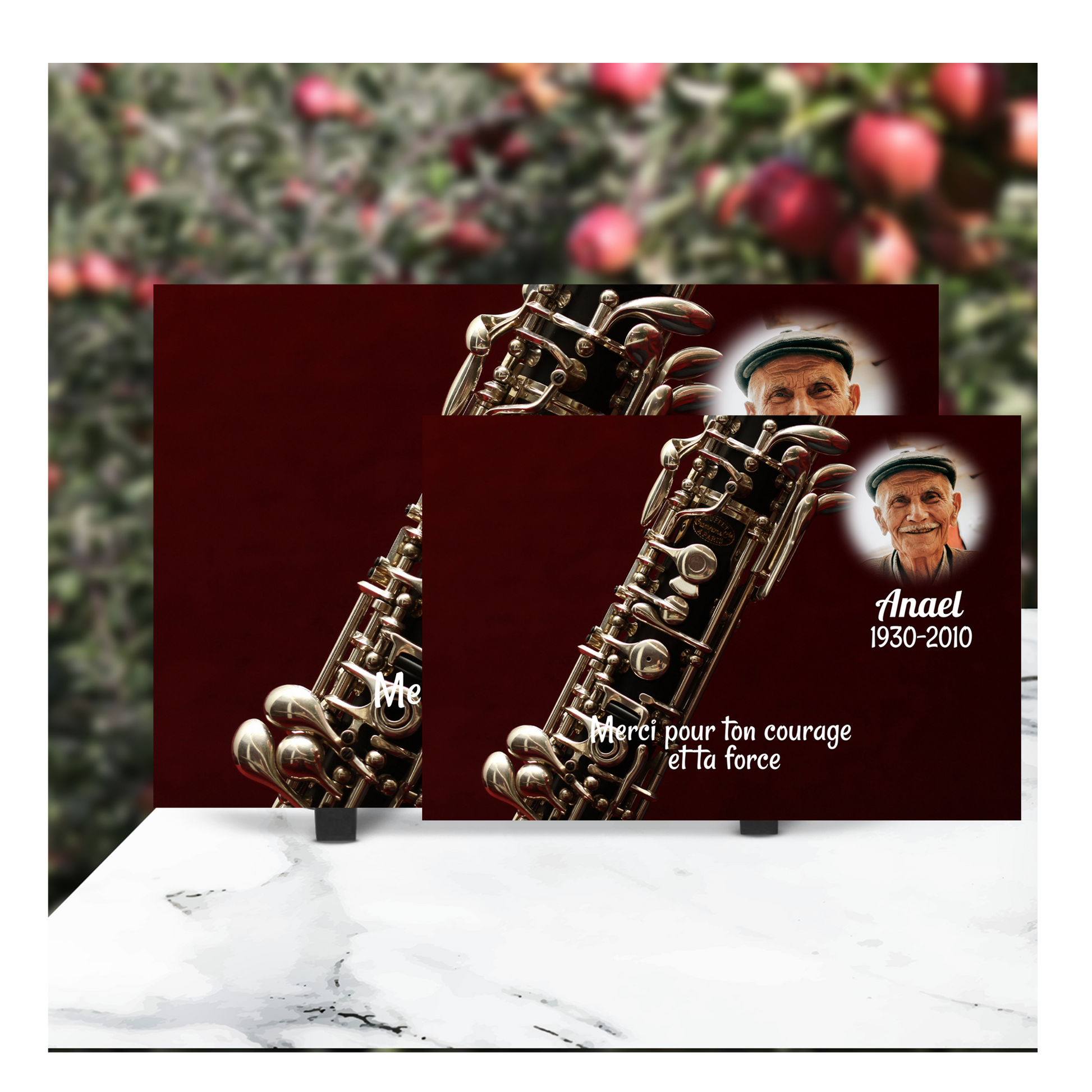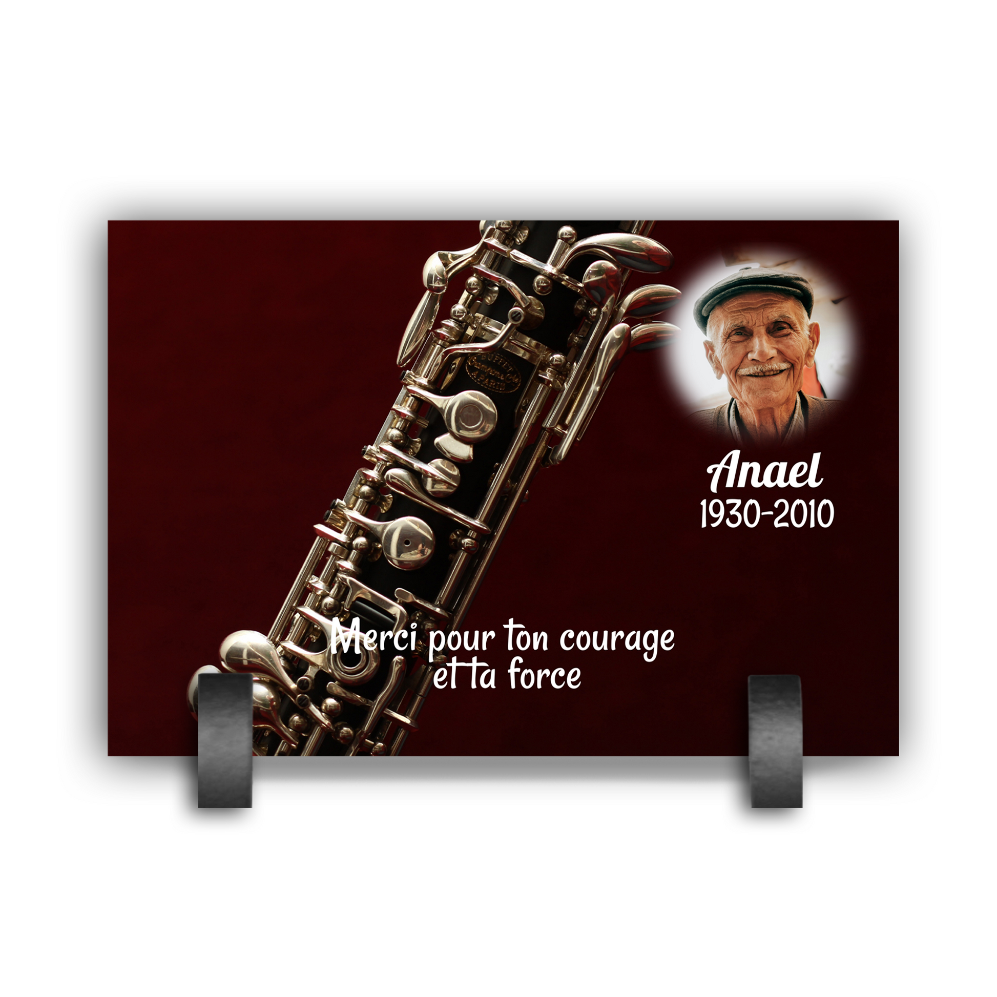 Absolument. Vous pouvez choisir la forme, ajouter un texte (nom, dates, message), intégrer une ou plusieurs photos, et même sélectionner le type de fixation.