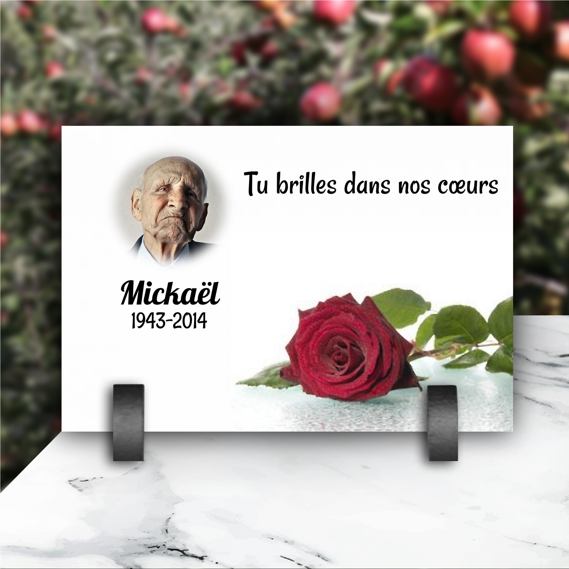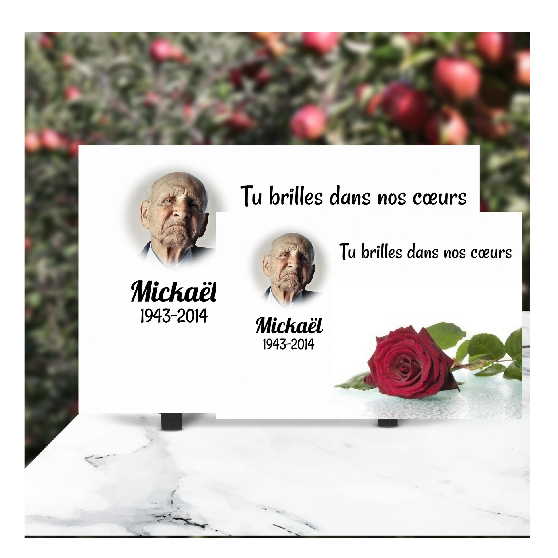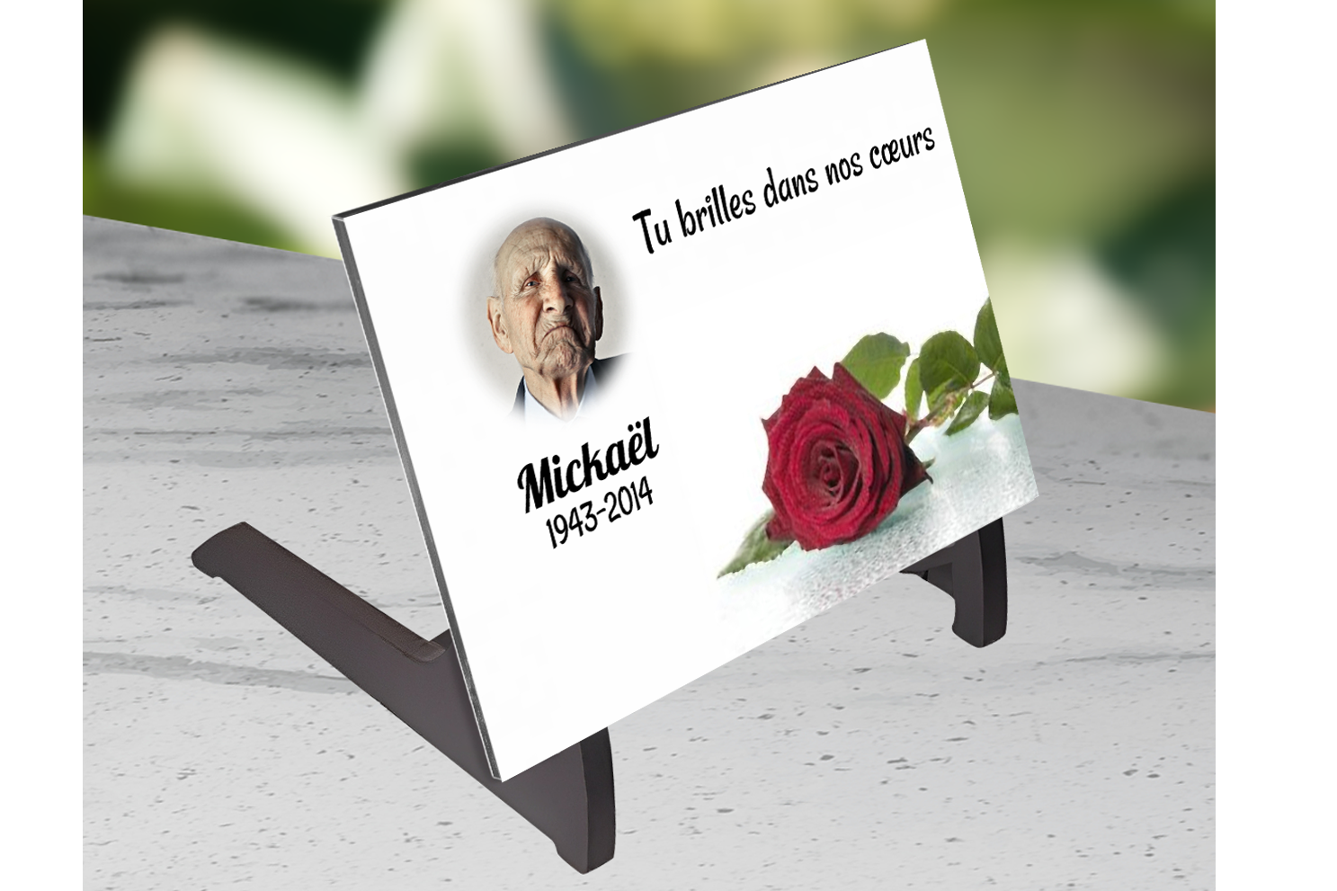 Absolument. Vous pouvez choisir la forme, ajouter un texte (nom, dates, message), intégrer une ou plusieurs photos, et même sélectionner le type de fixation.